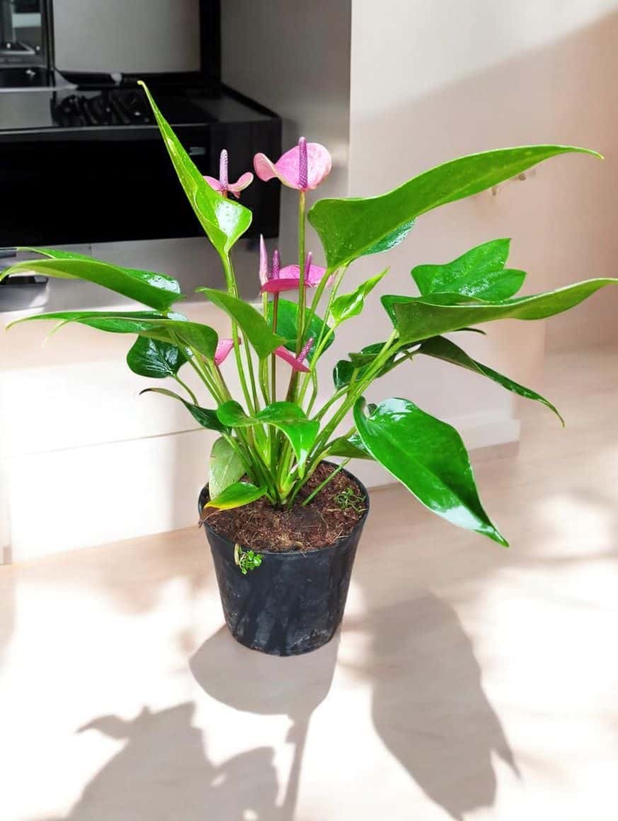 • Appearance: Features heart-shaped red spathes and a yellow-green spadix with shiny, deep green foliage.