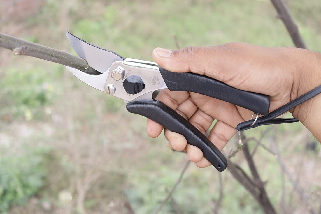 FALCON PRUNING SECATEUR (By Pass Secateur) Ideal for live or soft branches, producing a clean and accurate cut. Size : 200 mm By pass pruners usually work exactly like a pair of scissors, with two blades “passing by” each other to make the cut. At least one of the blades will be curved: a convex upper blade with either a concave or straight lower one.