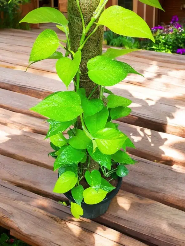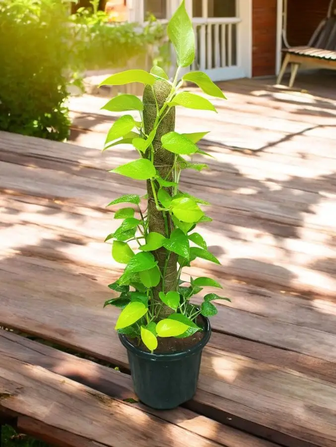 - Climbing Support: Pothos can grow as a hanging plant or climb up a support like a trellis or pole.
