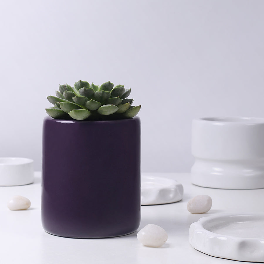 Indoor Ceramic Plant Pots Lilac Stories – Extra Small designed for tiny plants to place on your study desk. This design is available in 12 different colours and 3 different shapes to make a beautiful cluster of plant babies in lovely pots.