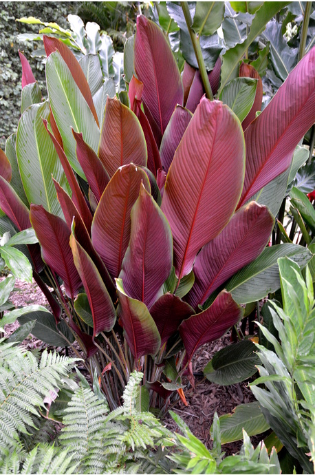 Wheat Calathea aka Pleiostachya pruinosa is a medium sized plant, grows to about 6 feet tall, native to rainforests from southern Mexico to Ecuador with broad, long-stalked leaves similar to a Calathea. The leaves are dull green above and the undersides are reddish maroon. The inflorescences consist of several branches covered in densely spaced, furry bracts resembling wheat, opening up to expose light purple flowers. Use as an accent plant in a tropical garden or as a container plant on a patio. Prefers semi-shade to full shade, moist well-drained soil and occasional misting.