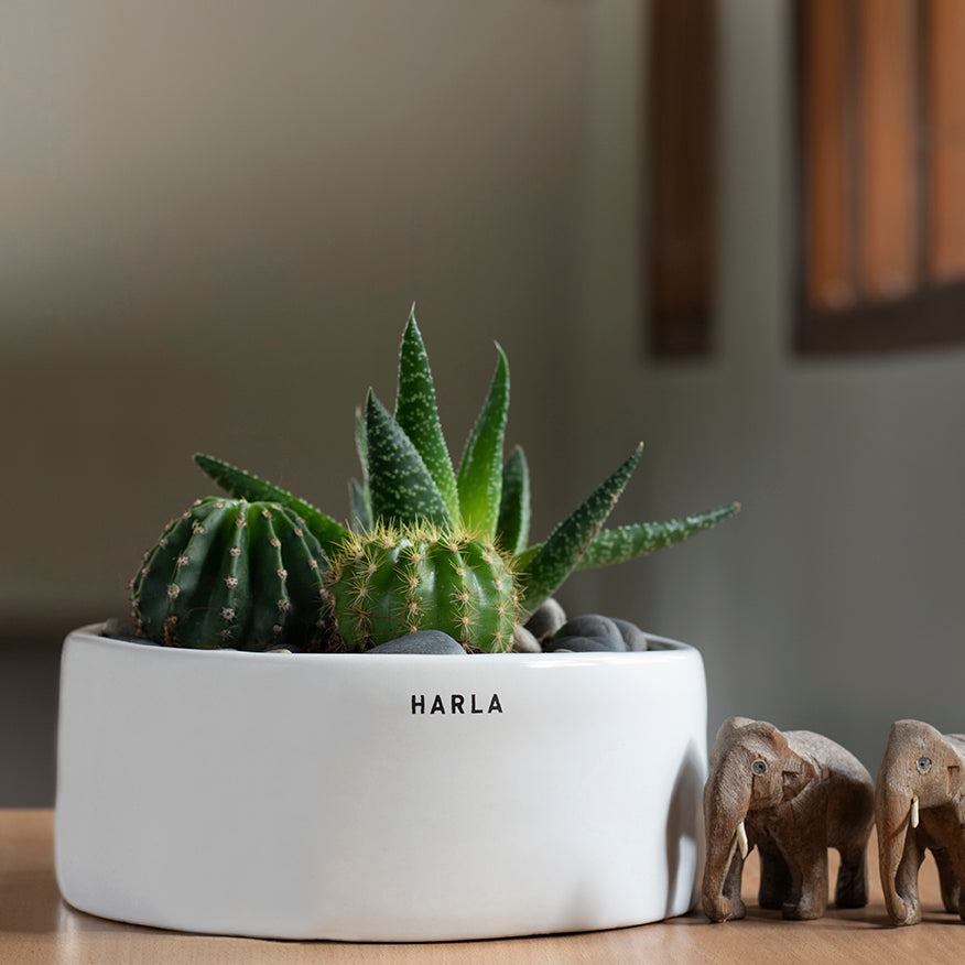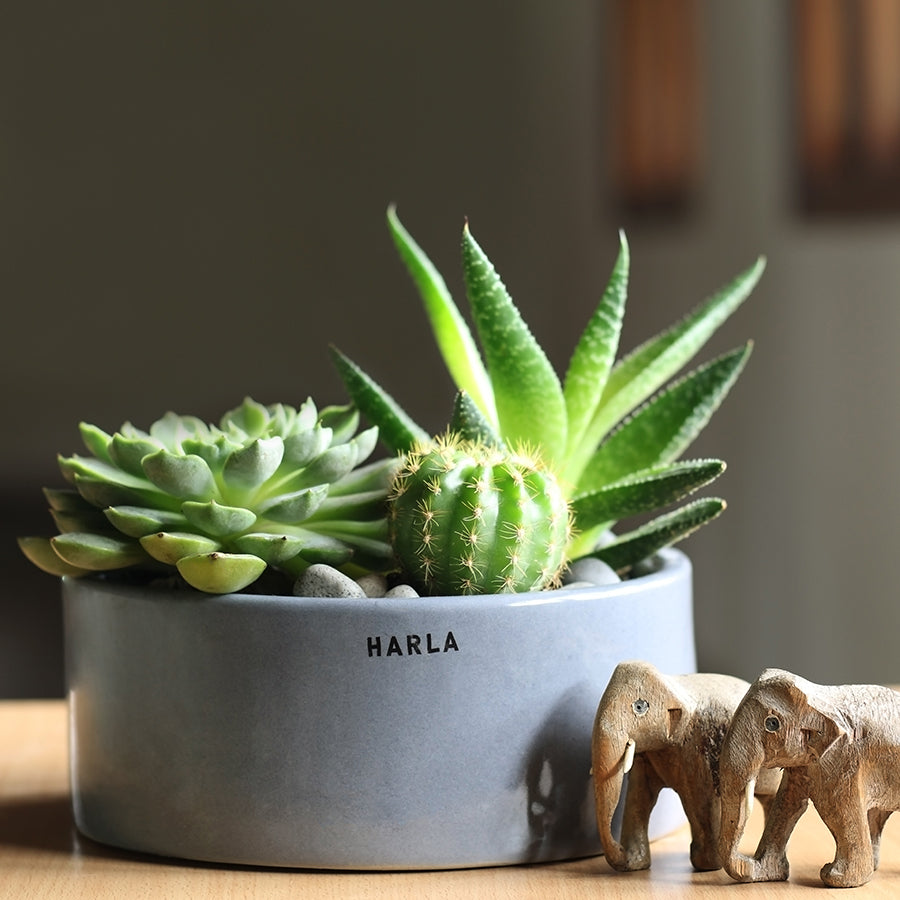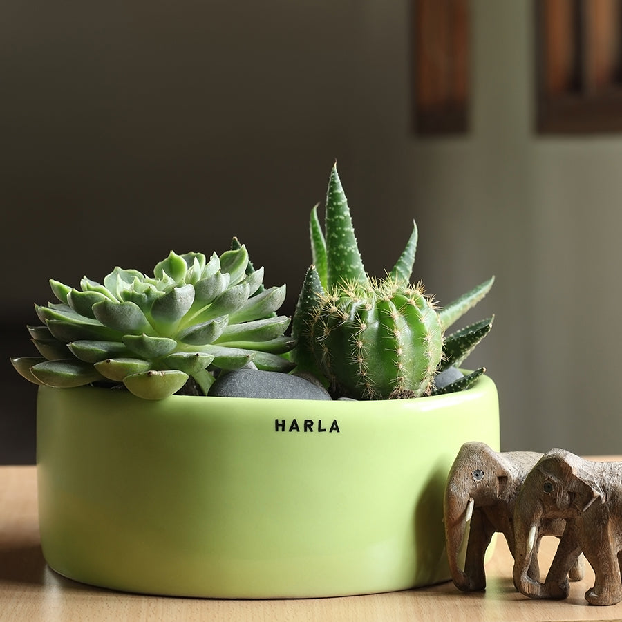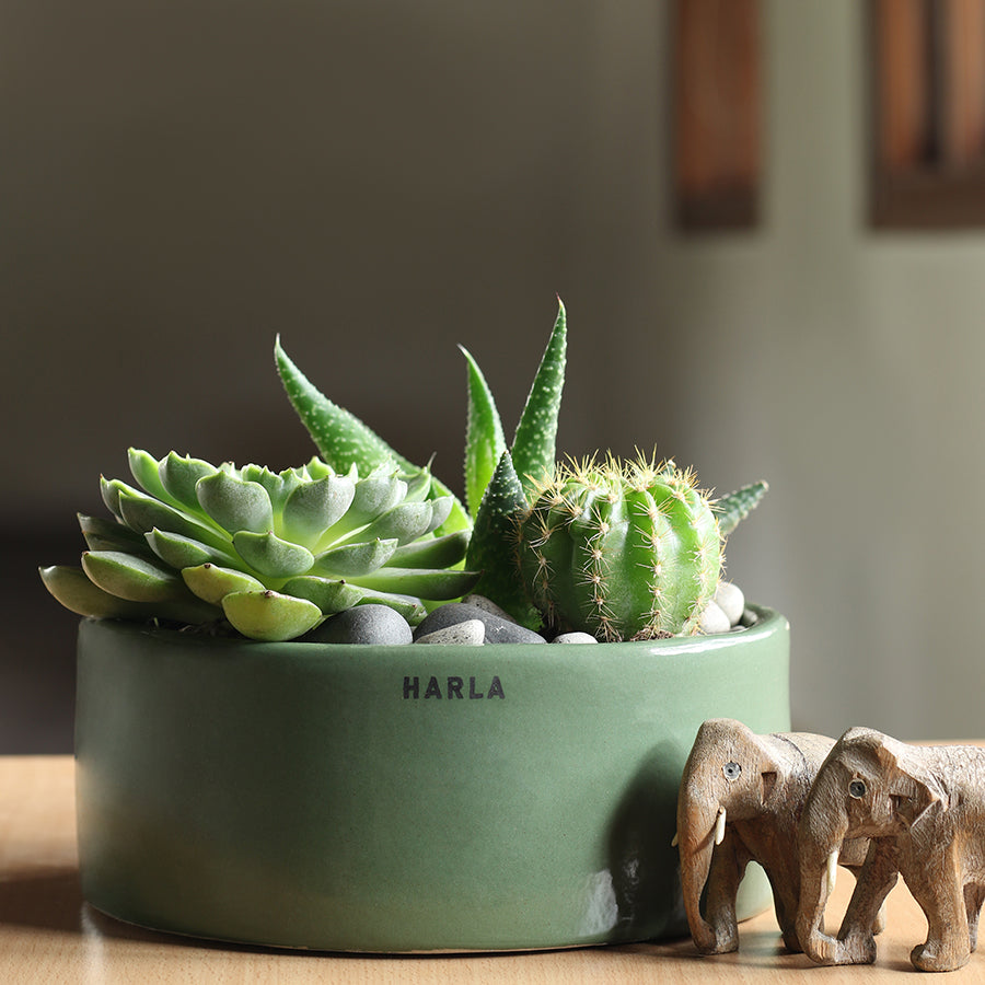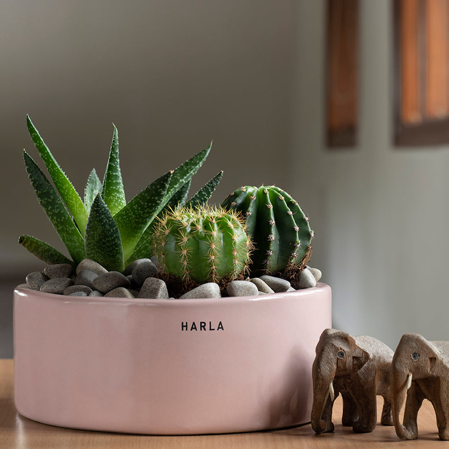 Round Ceramic Pot Lilac Stories-Flat is suitable for planting 3-4 succulents in the planter. This design is available in 12 different colours and 3 different shapes to make a beautiful cluster of plant babies in lovely pots.